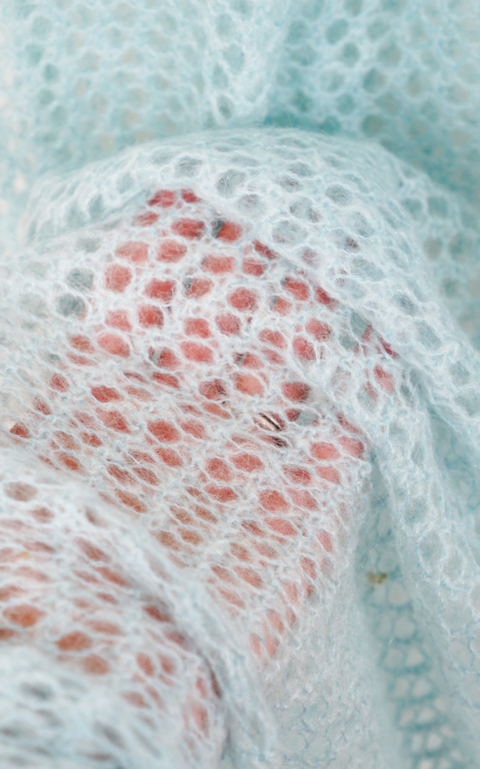 SISLEY Mohair Wool Crochet Knit See Though Maxi Light Blue Cut Out Shoulder Straps Sold Out Dress S